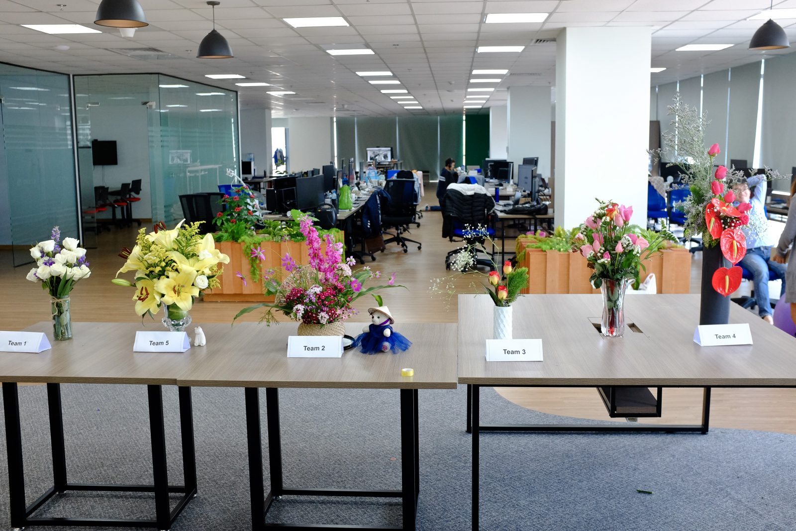 Đầu tiên, phải kể đến Cuộc thi cắm hoa được tổ chức với đội thi là các thành viên trong Công ty. Mỗi đội thi gồm 3 thành viên, trong đó bắt buộc có 1 thành viên nữ. Với một số tiền nhất định nhận từ Ban tổ chức, các đội thi có nhiệm vụ chuẩn bị hoa, lên ý tưởng và thuyết trình thông điệp mình muốn gửi đến thông qua tác phẩm.